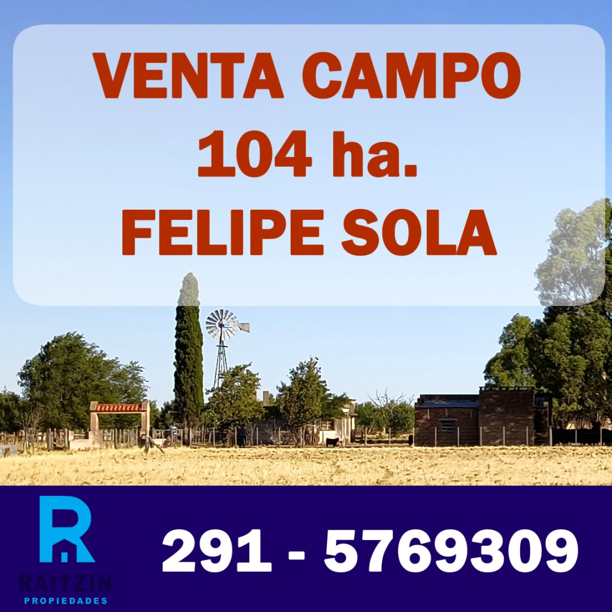Se venden 104 hectáreas en Felipe Sola, partido de Puán.